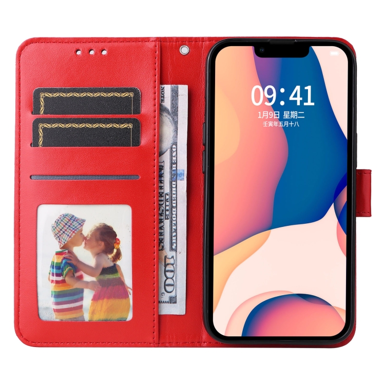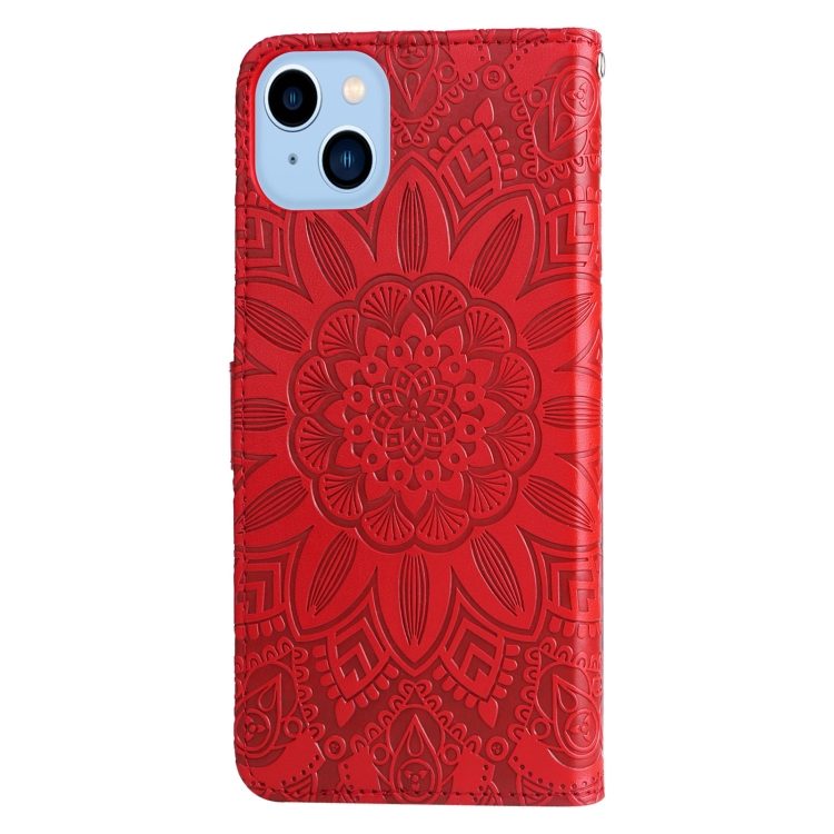 Estuche para Teléfono iPhone 14 Cuero Estampado Girasol En Relieve (Rojo)