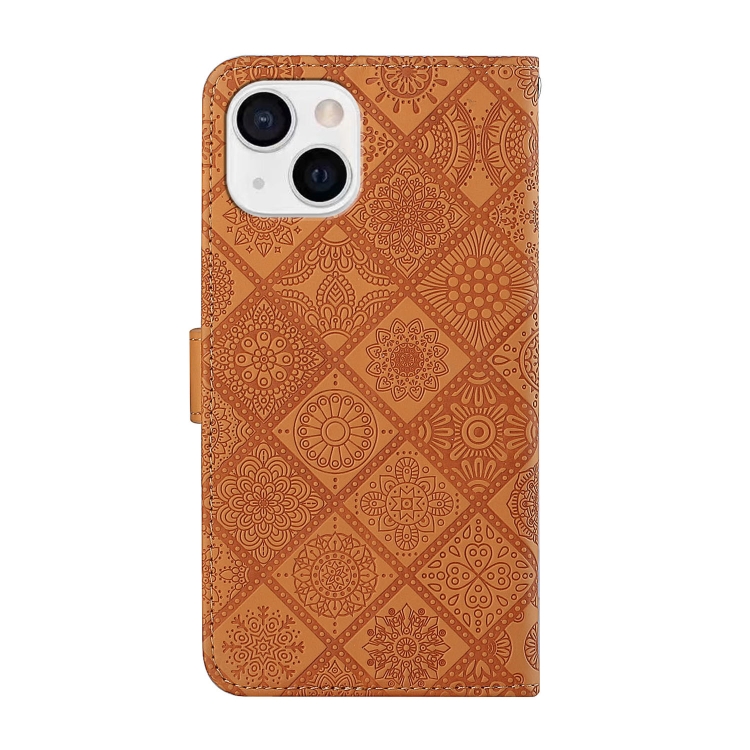 Estuche para teléfono iPhone 14 Cuero Patrón en Relieve Estilo Étnico (Marrón)