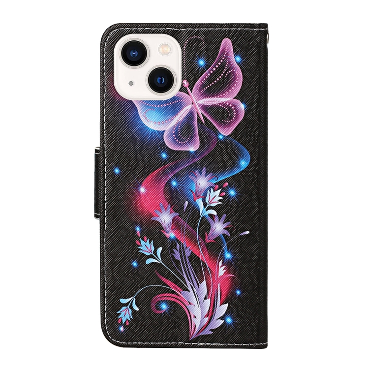 For iPhone 14 3D Colored Drawing Flip Leather Phone Case (Fluorescent Butterfly)