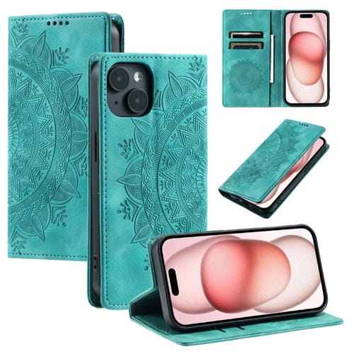 For iPhone 14 Totem Embossed Magnetic Leather Phone Case (Green)
