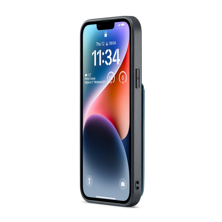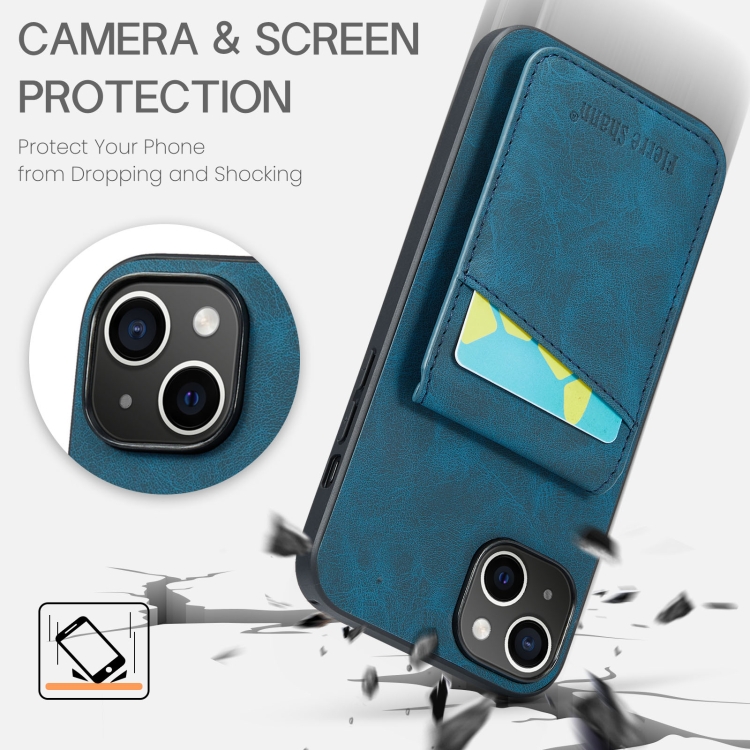 Funda para iPhone 14 Fierre Shann Crazy Horse Card Holder Contraportada PU (Azul)