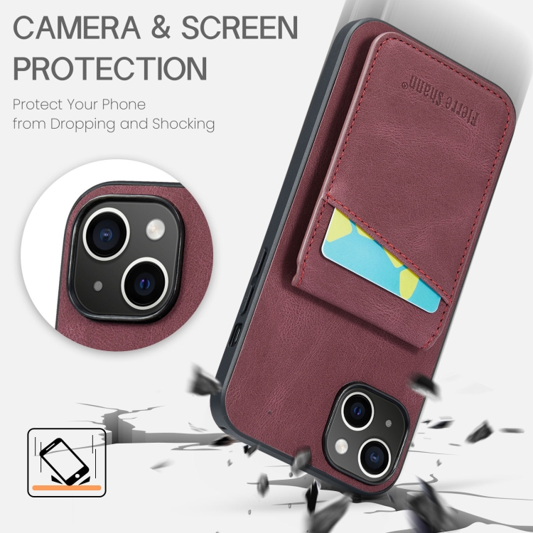 Funda para Teléfono Fierre Shann Crazy Horse Tarjetero Contraportada para iPhone 14 (Rojo Vino)
