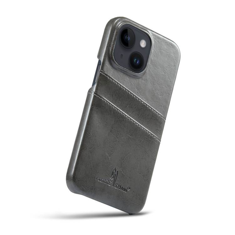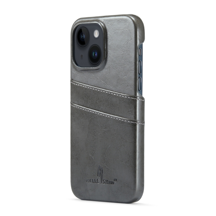 Funda para iPhone 14 Fierre Shann Retro Oil Wax Texture PU Cuero con Ranuras para Tarjetas (Gris)