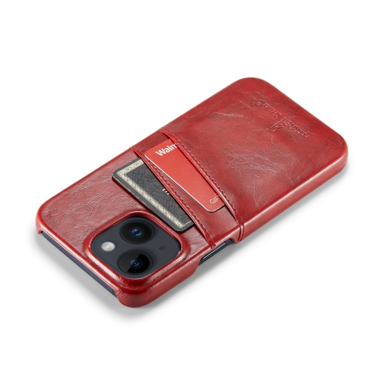 Funda de Cuero Fierre Shann iPhone 14 Retro Oil Wax Texture con Ranuras para Tarjetas (Rojo)