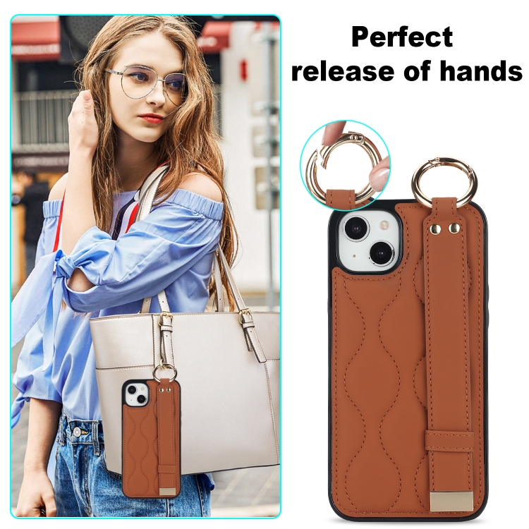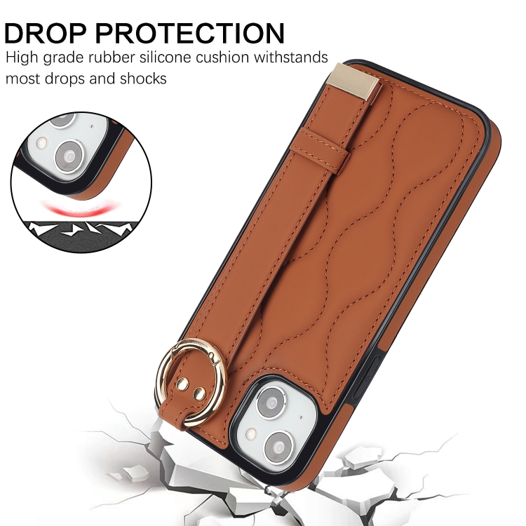 Funda para iPhone 14 Antideslizante con Anillo Cobertura Completa PU con Muñequera (Marrón)