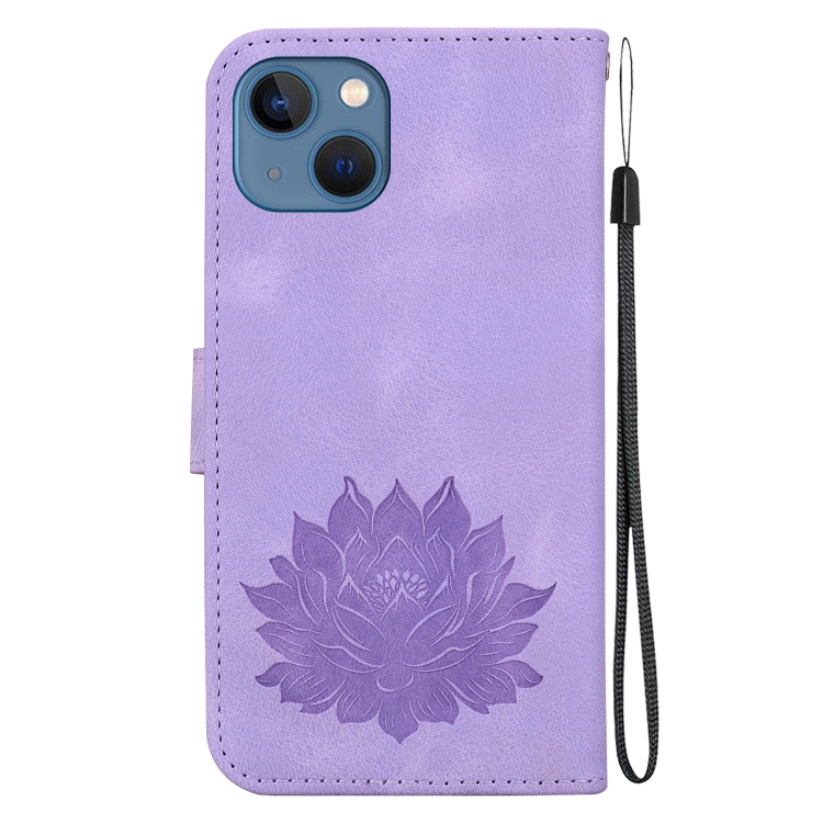 Funda de Cuero para iPhone 14 con Relieve de Loto (Púrpura)