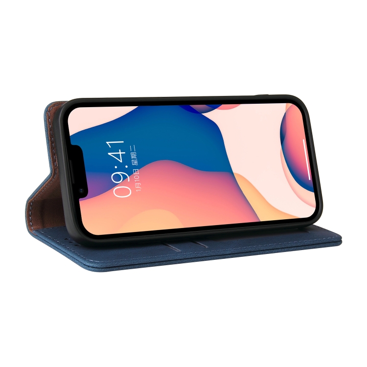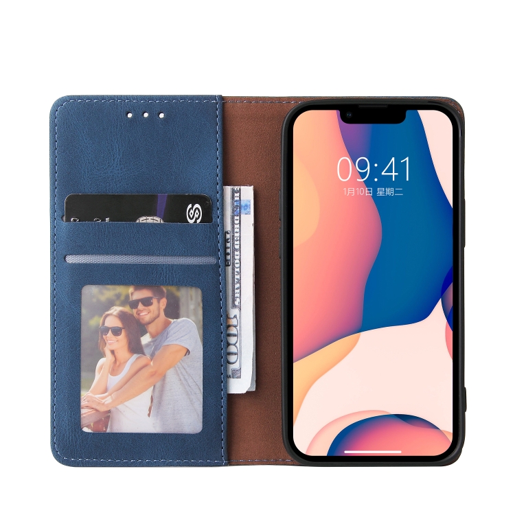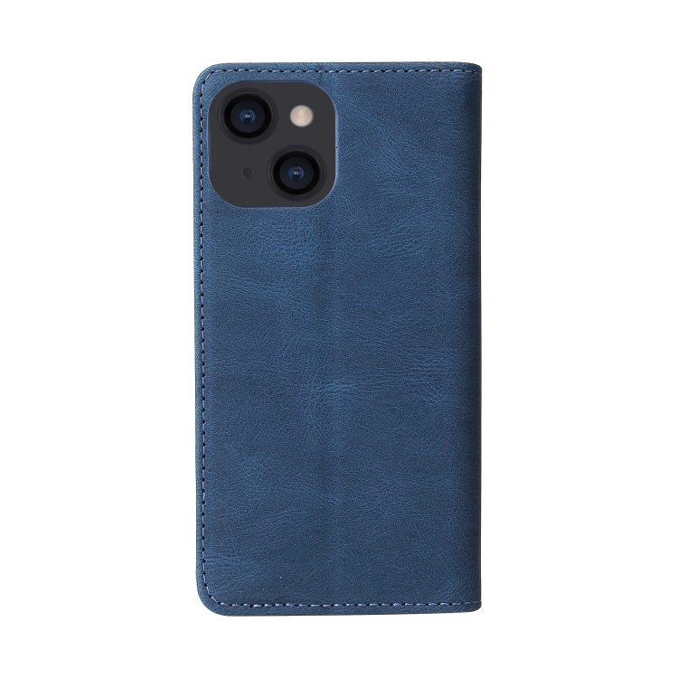 Funda de Cuero para iPhone 14 con Tapa Horizontal y Cierre de Succión Simple (Azul)