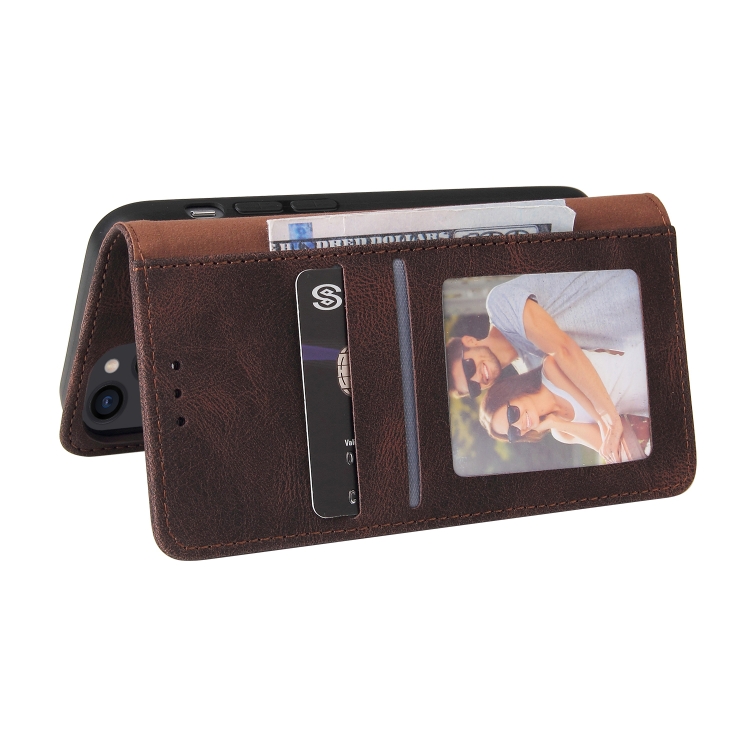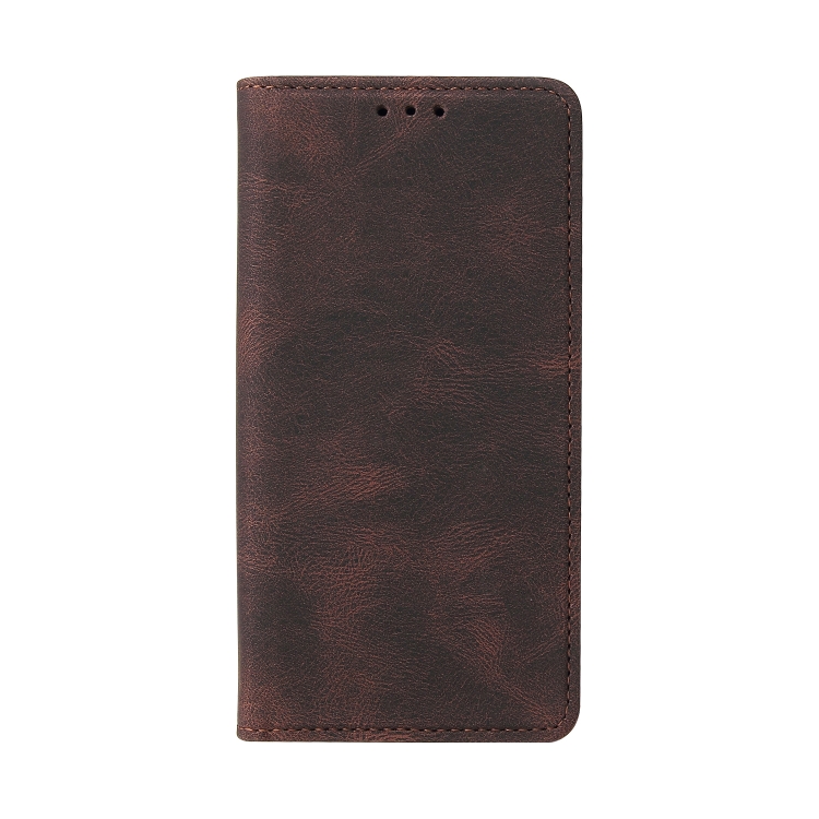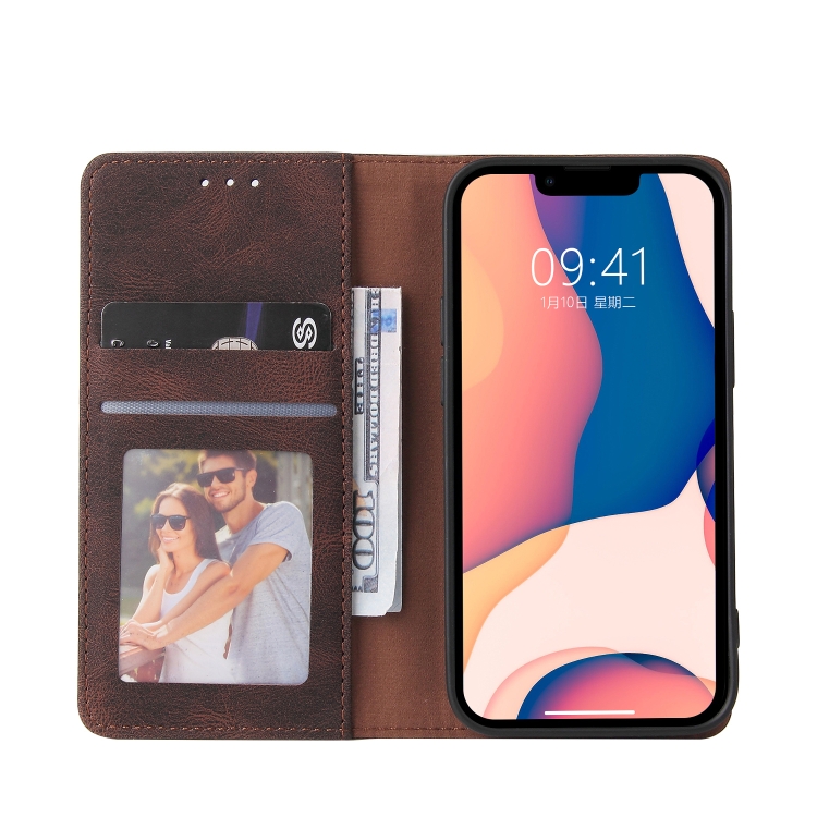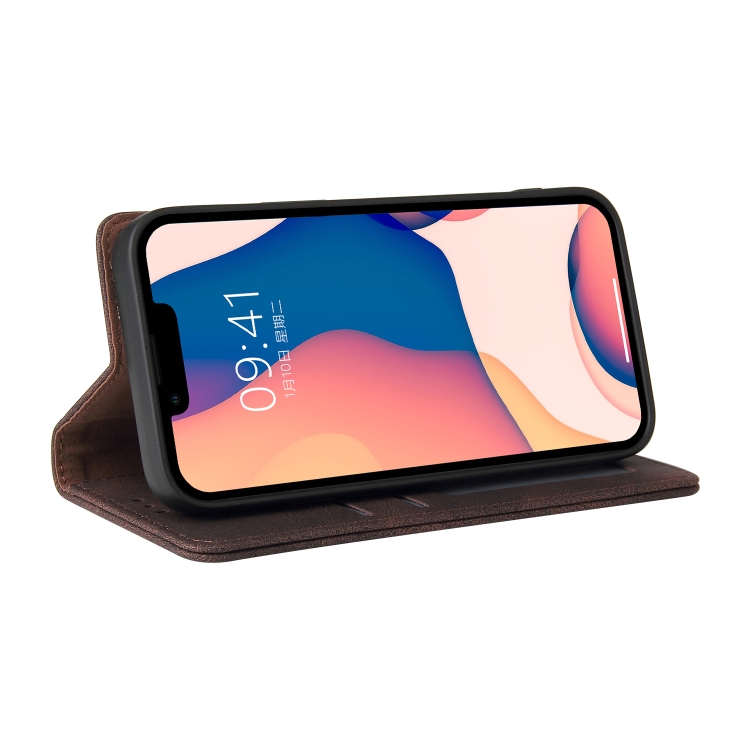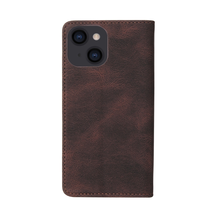 Funda para iPhone 14 Cuero Tapa Horizontal Cierre de Succión Simple (Marrón)