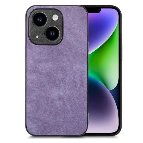 Funda de teléfono para iPhone 14 con contraportada de PC de cuero vintage (Púrpura)