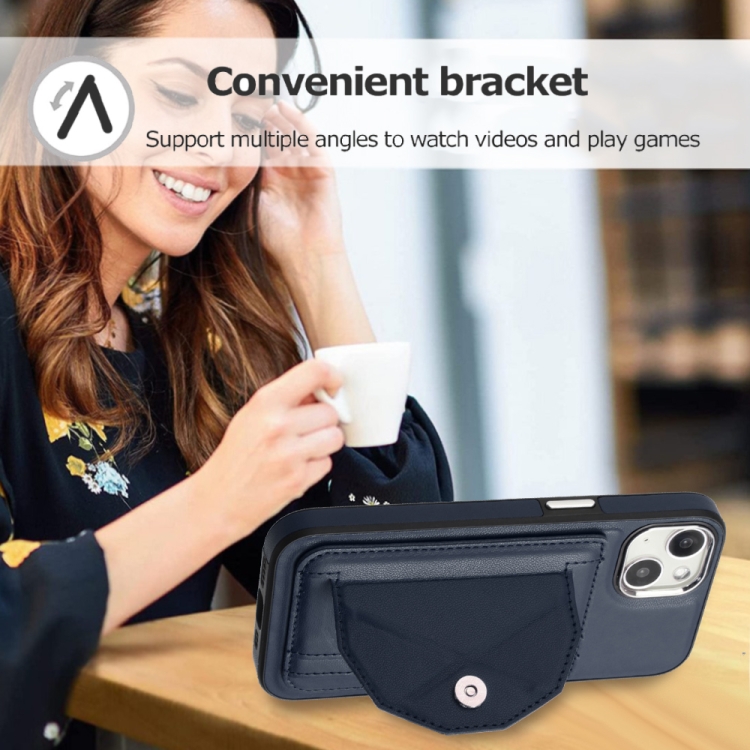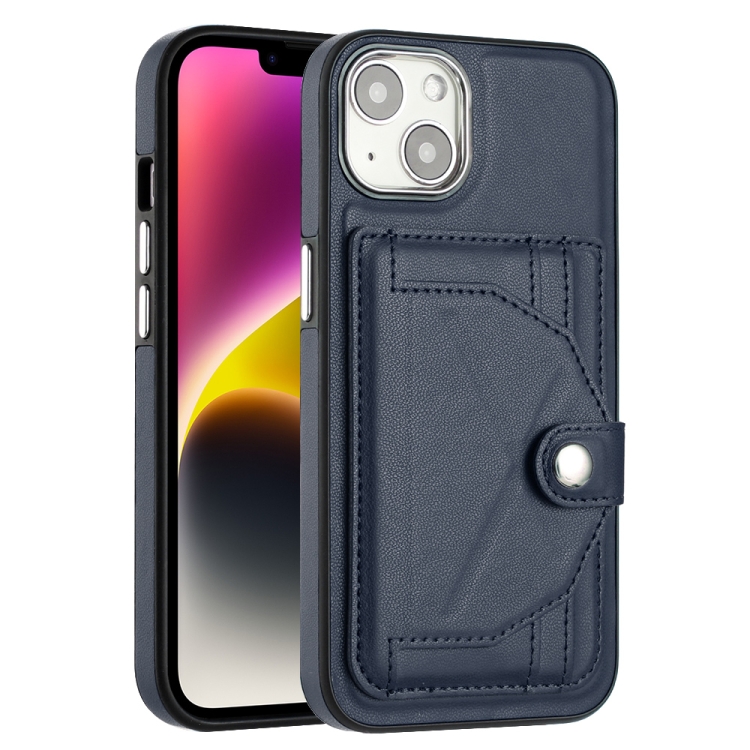 Funda de Teléfono para iPhone 14 Cuero a Prueba de Golpes con Tarjetero (Azul)