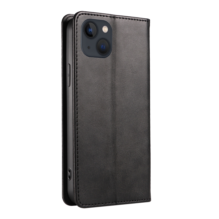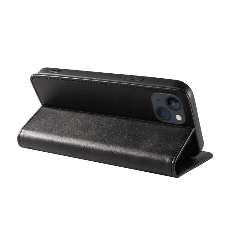Funda de Teléfono iPhone 14 Cuero Tapa Magnética Textura de Becerro (Negro)