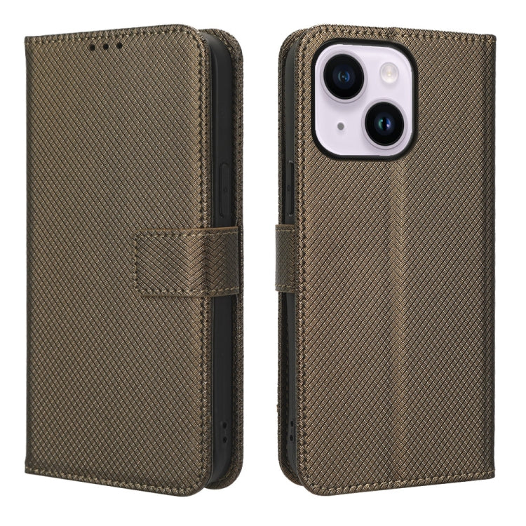 Funda de teléfono iPhone 14 Cuero Textura de Diamante (Marrón)