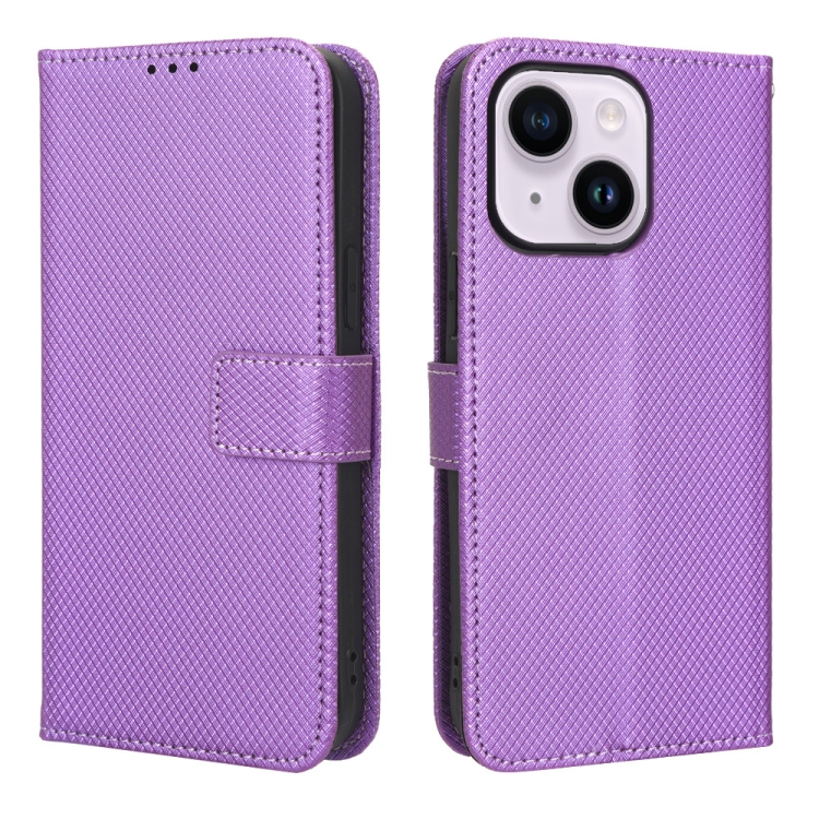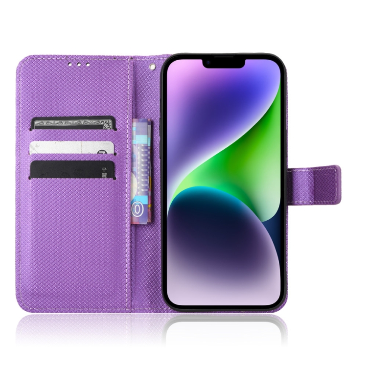 Funda de Teléfono iPhone 14 Cuero Textura de Diamante (Púrpura)