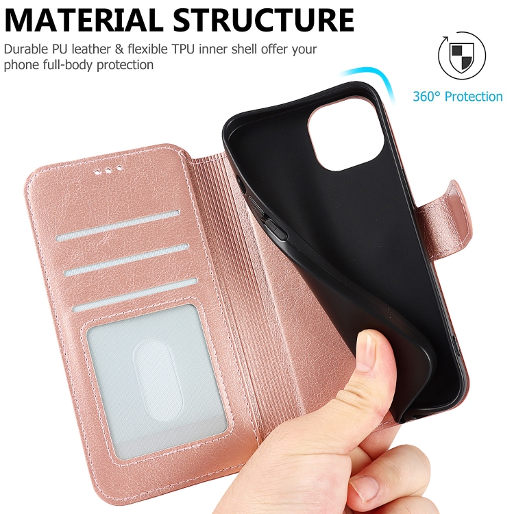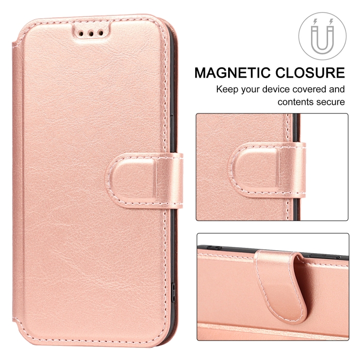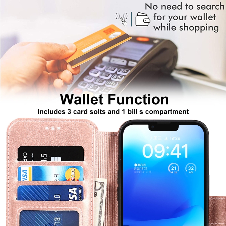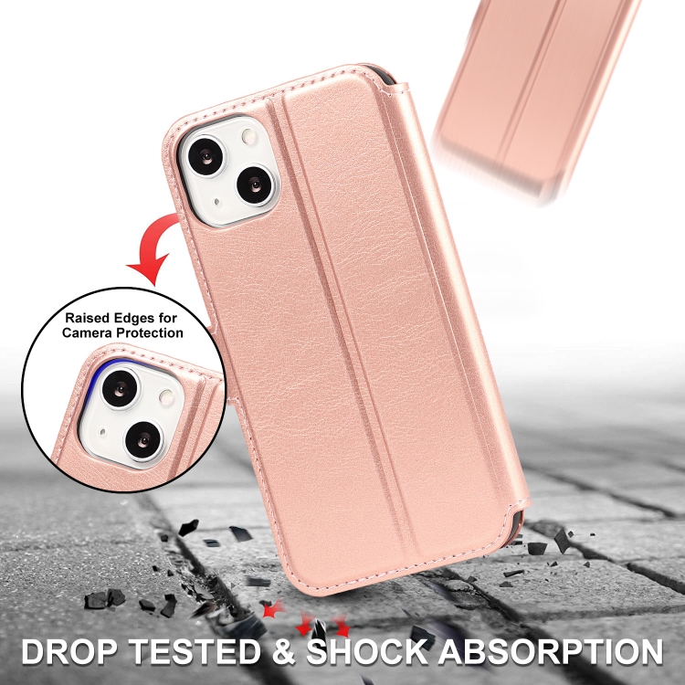 Funda de Teléfono para iPhone 14 Cuero PU + TPU a Prueba de Golpes (Oro Rosa)