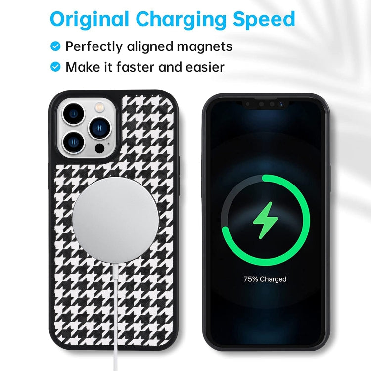 Funda de Teléfono iPhone 14 Magnética Magsafe Textura de Cuero (Leopardo Negro)