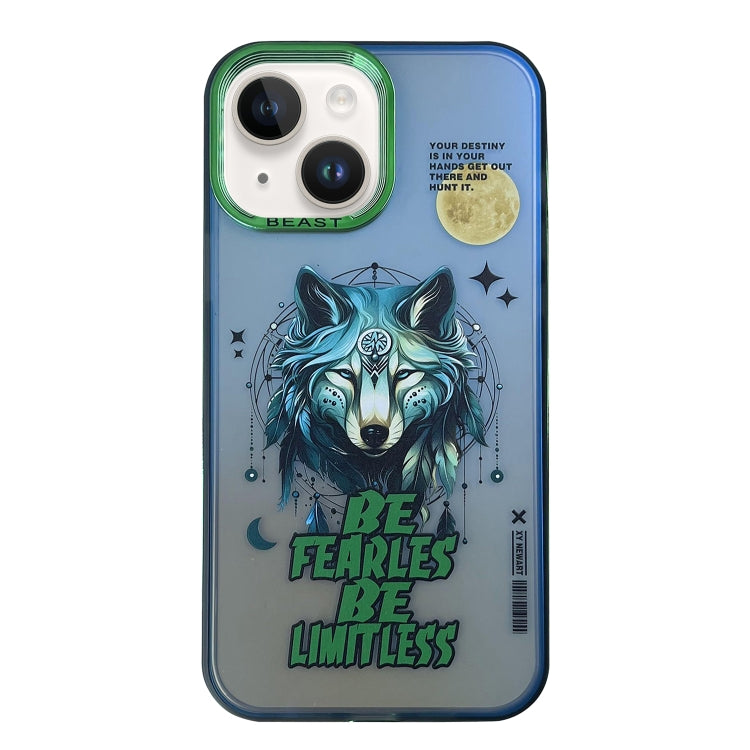 Funda para Teléfono iPhone 14 Serie Aurora Patrón Pintado (Lobo)