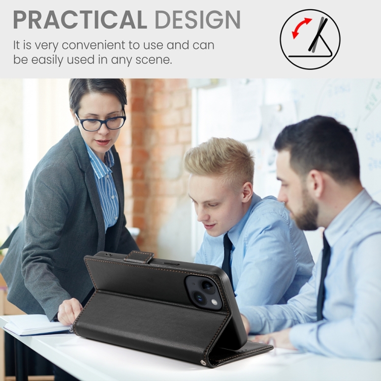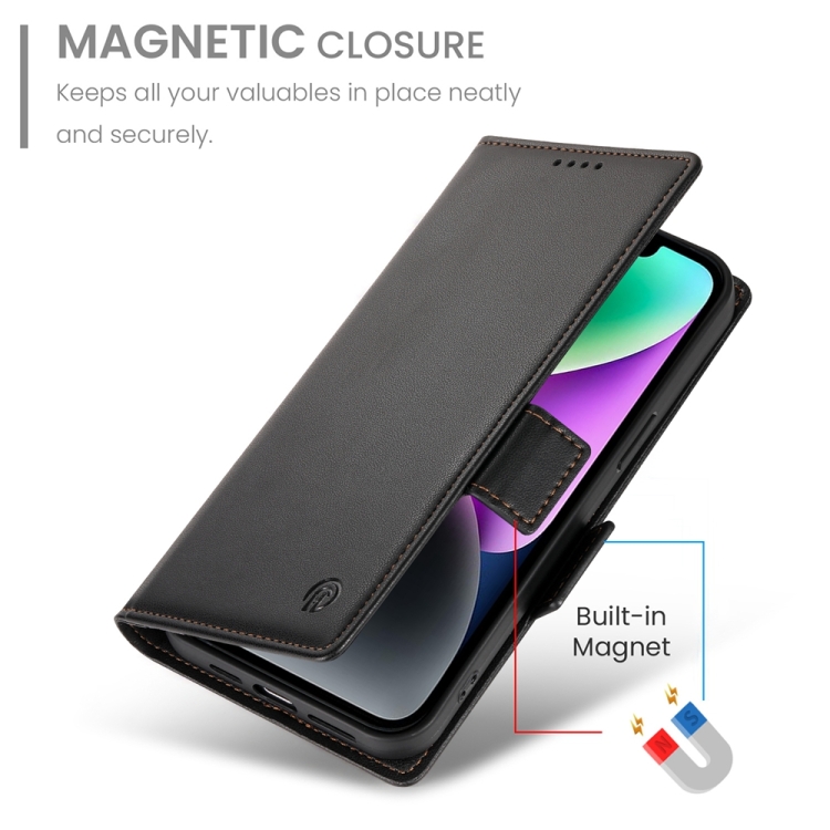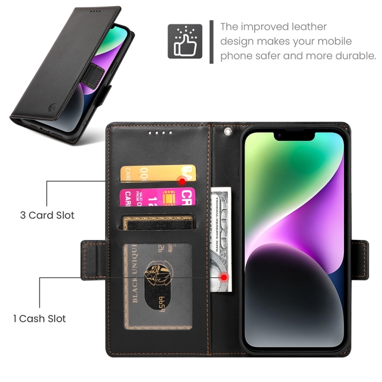 Funda para Teléfono iPhone 14 Cuero Esmerilado Magnético con Hebilla Lateral (Negro)