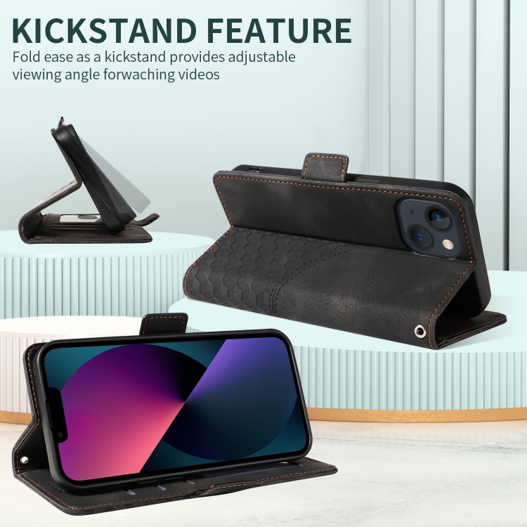 Funda para Teléfono iPhone 14 Cuero Estrellado con Rombo en Relieve (Negro)
