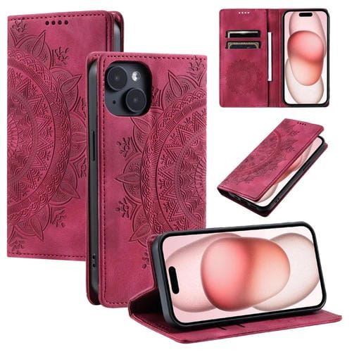 For iPhone 14 Totem Embossed Magnetic Leather Phone Case (Red)