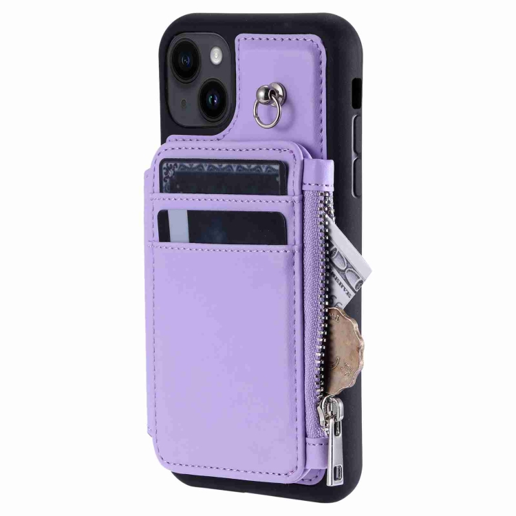 Funda para Teléfono iPhone 14 con Protección Rfid Ranuras para Tarjetas y Cremallera (Púrpura)