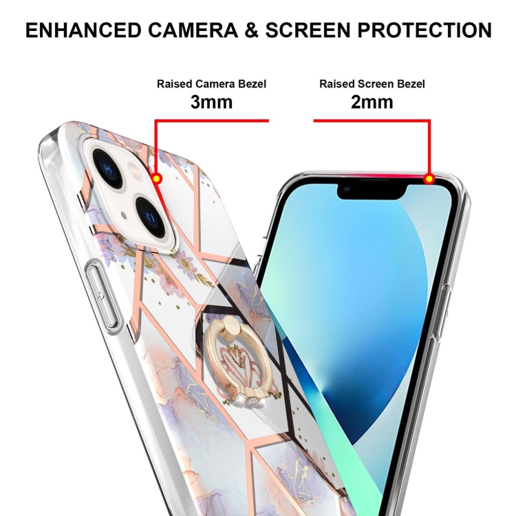 Estuche TPU para iPhone 14 Galvanoplastia Empalme Patrón Flor Mármol Soporte Anillo (Corona Imperial)