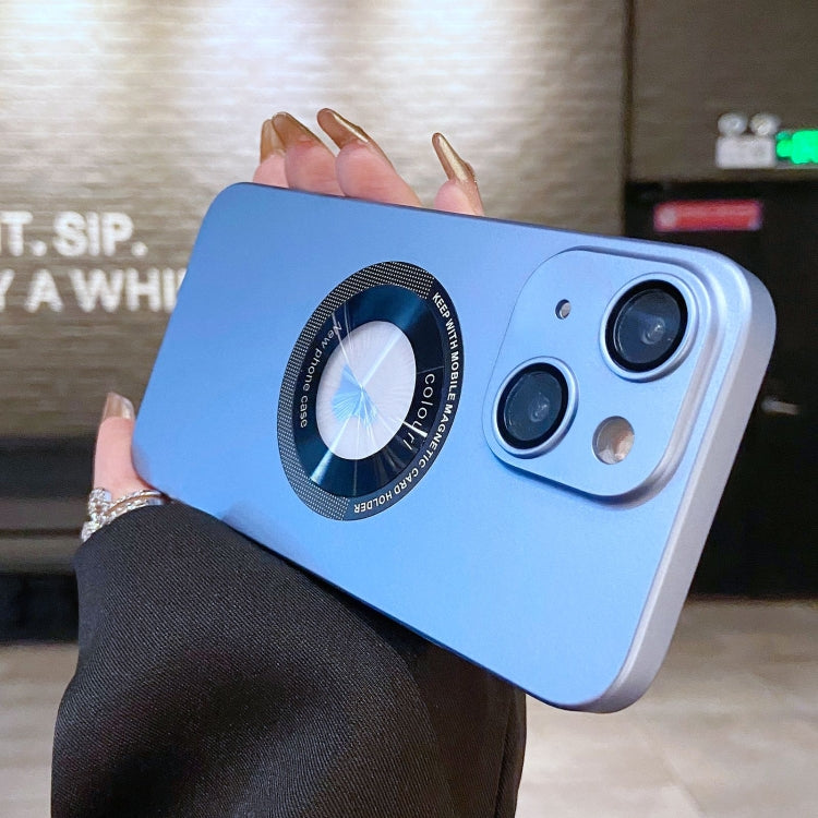 Caja magnética para iPhone 14 Galvanoplastia Inyección de Aceite Magsafe para PC (Azul Claro)