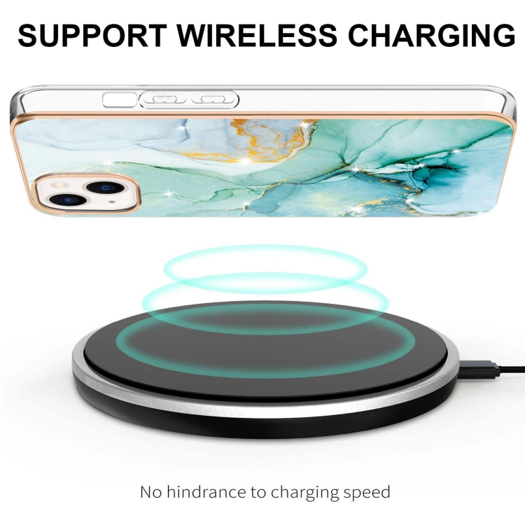 Caja de Teléfono para iPhone 14 Galvanoplastia Patrón Mármol a Prueba de Golpes Imd TPU Doble Cara (Verde)