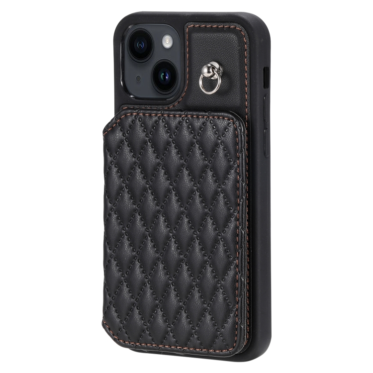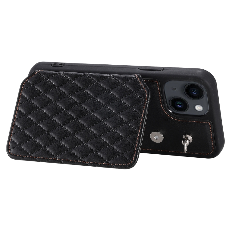 Funda para Teléfono iPhone 14 Grid Texture Card Bag con Cordón (Negro)