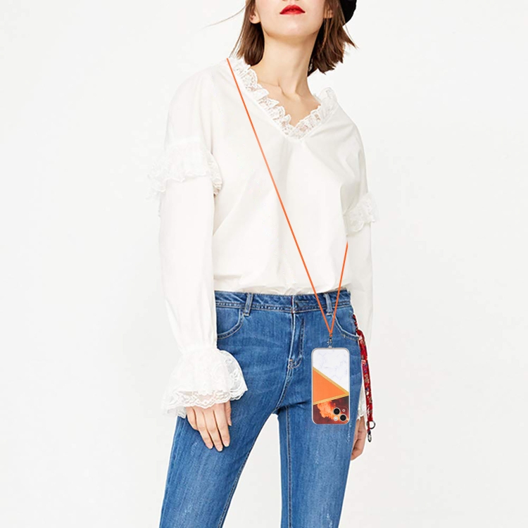 Funda de TPU para iPhone 14 Lanyard Stitching Marble (Naranja)