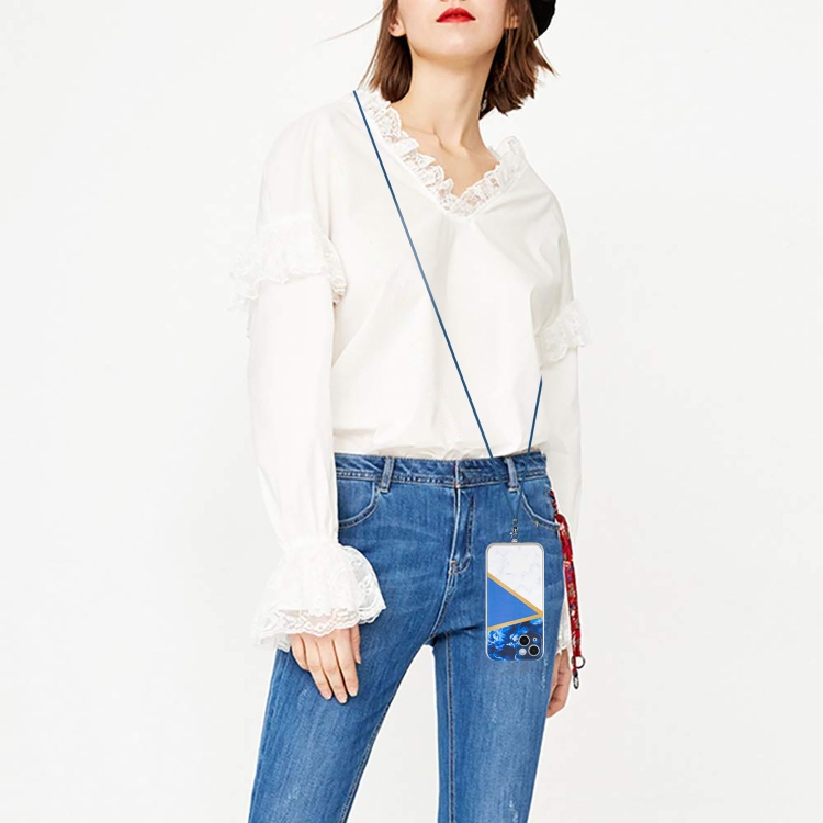 Funda TPU para iPhone 14 Lanyard Stitching Marble Protección (Azul Oscuro)