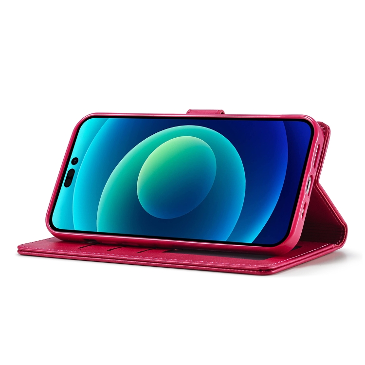 Funda de Cuero LC.Imeeke para iPhone 14 Textura Calf Horizontal Flip (Rojo)