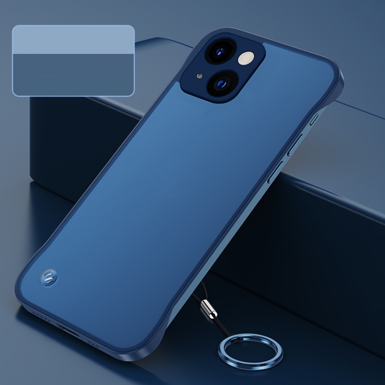 Funda para iPhone 14 Lente de Metal Frosted Finger Ring Strap (Azul)