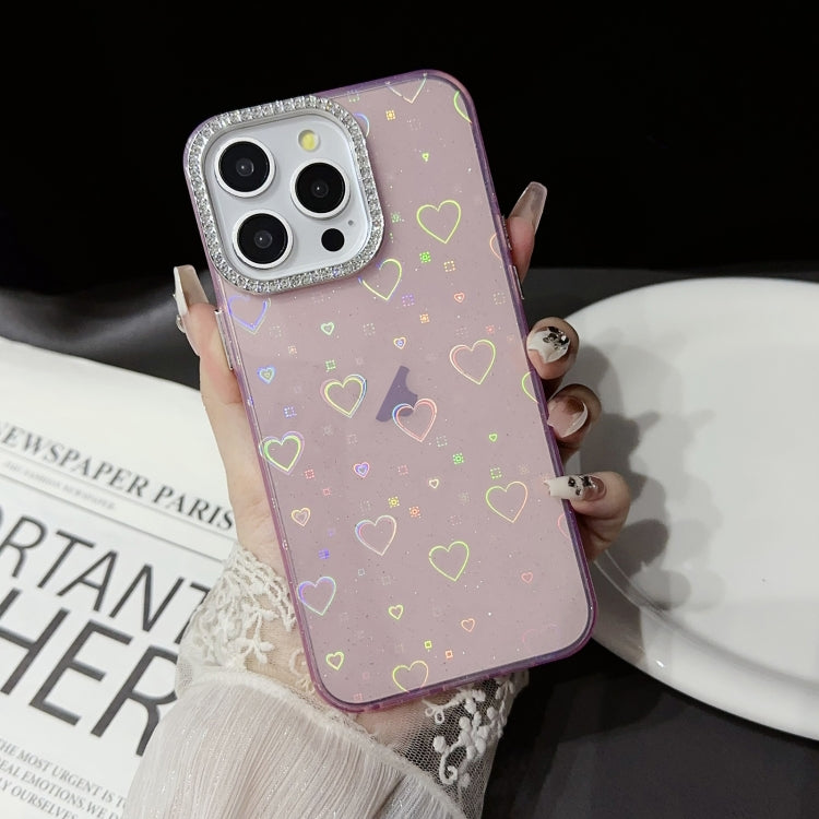 Funda para iPhone 14 Love Pattern Diamond Lens Frame Imd Acrílico (Rosa)