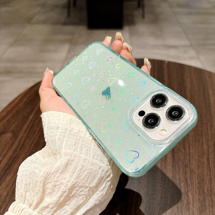Funda de teléfono iPhone 14 Love Pattern marco de Lente acrílico IMD (Verde)