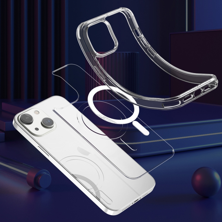 Funda para teléfono iPhone 14 Magsafe Airbag Magnético a prueba de golpes TPU + PC (Blanco Transparente)
