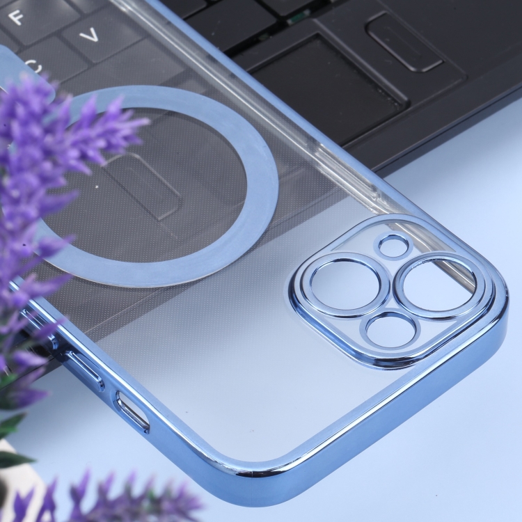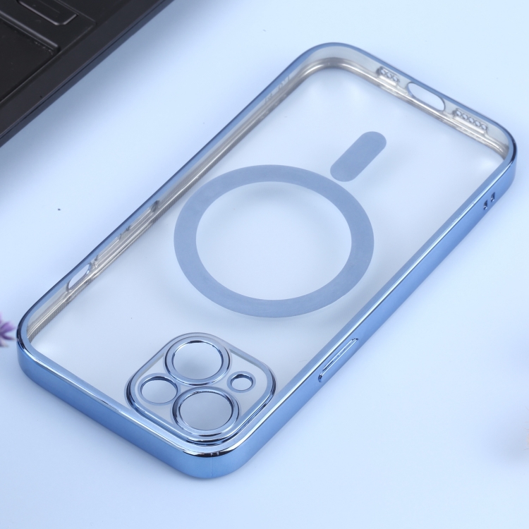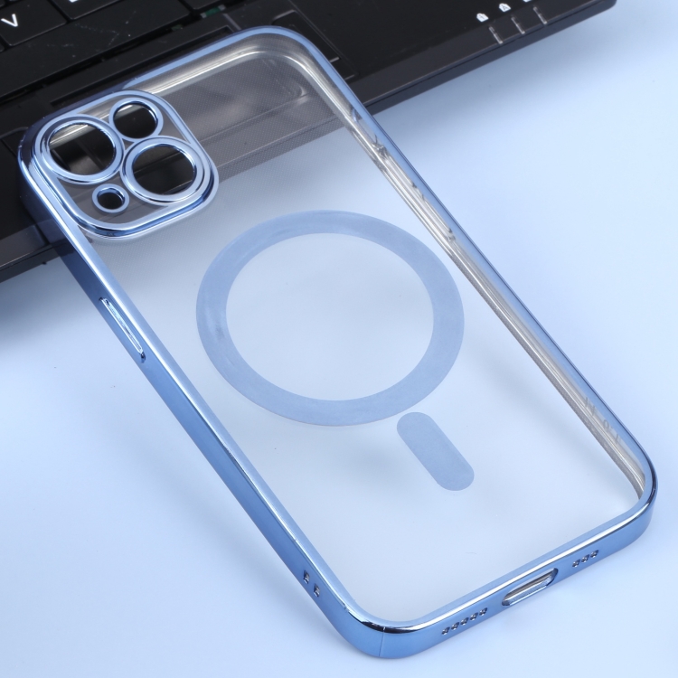 Funda para iPhone 14 Magsafe Galvanoplastia Straight TPU Phone Case (Azul)