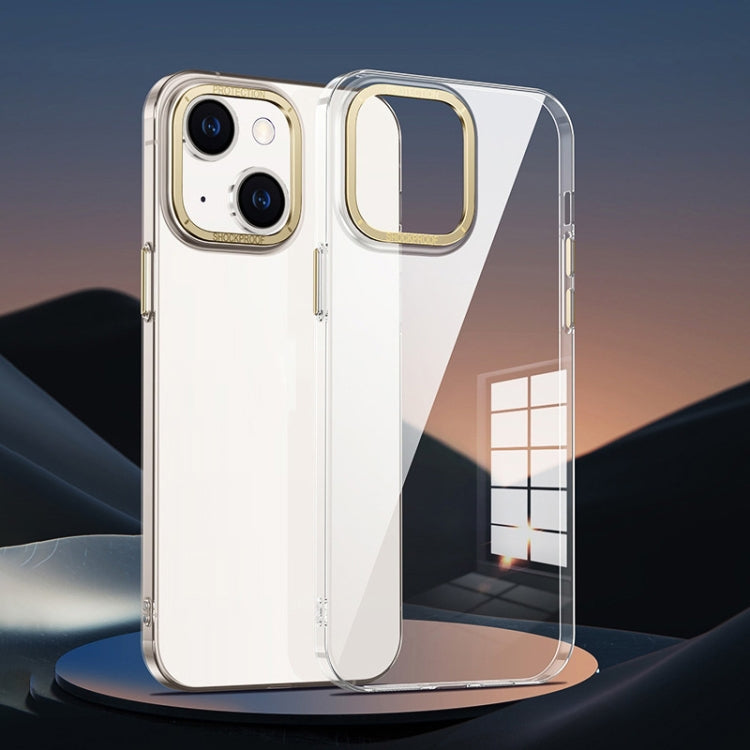 Funda para iPhone 14 Metal Lens Ring Clear PC Phone Case (Oro)