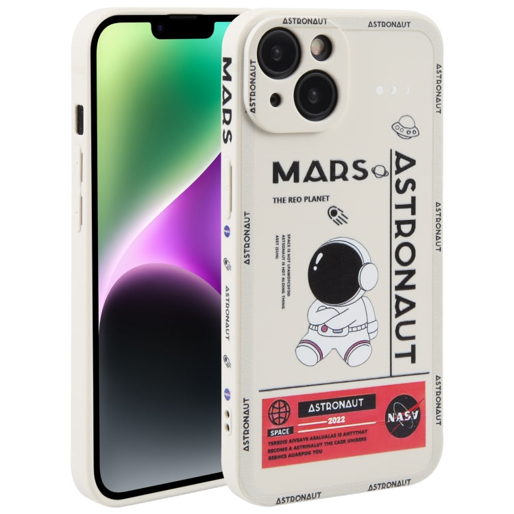 For iPhone 14 Astronaut Pattern Silicone Straight Edge Phone Case (Mars Astronaut-White)