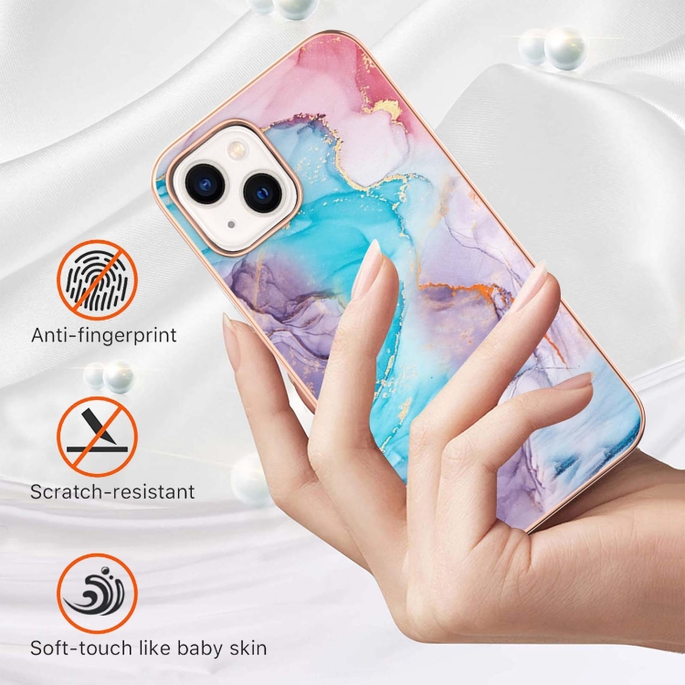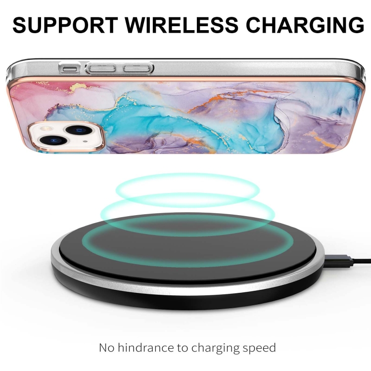 Estuche para iPhone 14 TPU Patrón de Galvanoplastia Imd a Prueba de Golpes (Mármol Azul de la Vía Láctea)