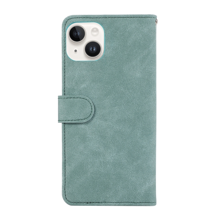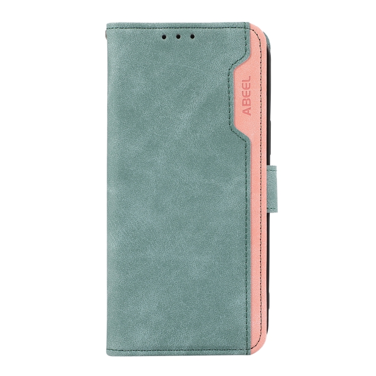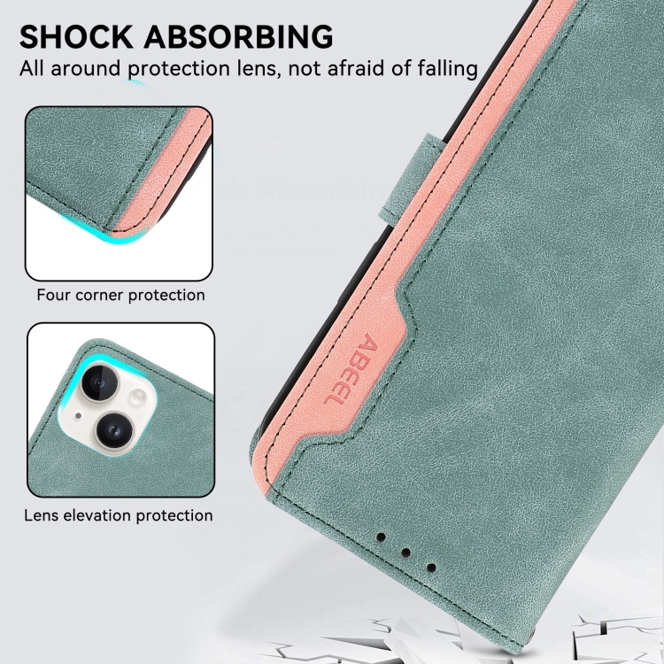 Estuche Magnético de Cuero Abeel para iPhone 14 Plus Color Block con RFID (Cian-Rosa)