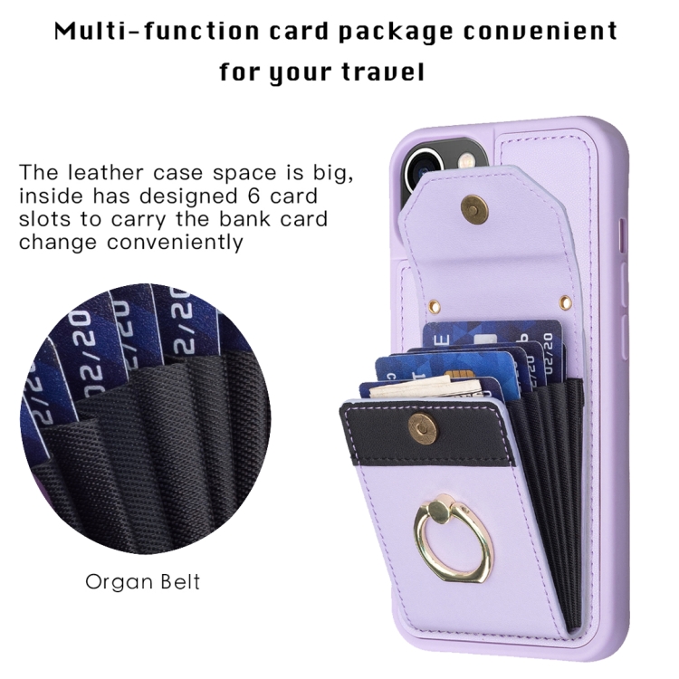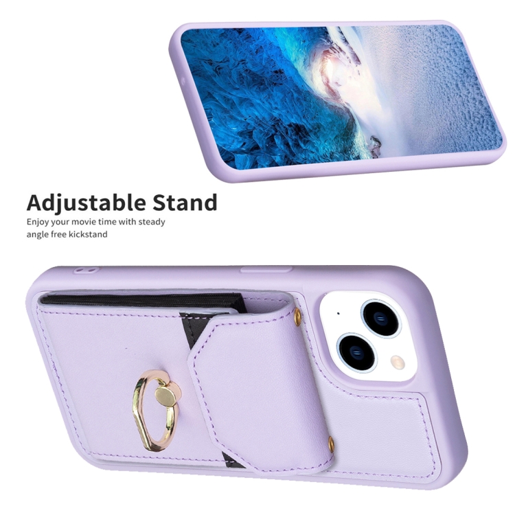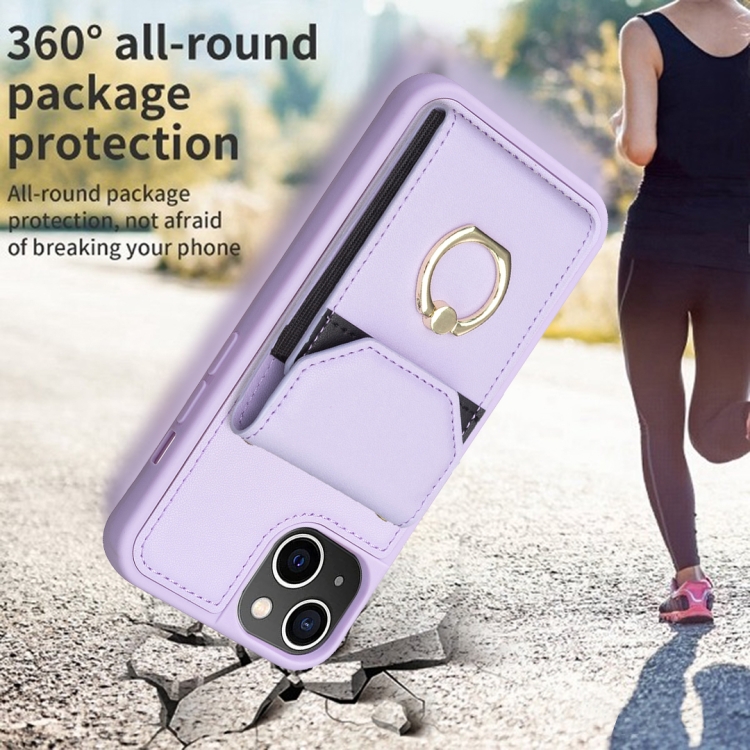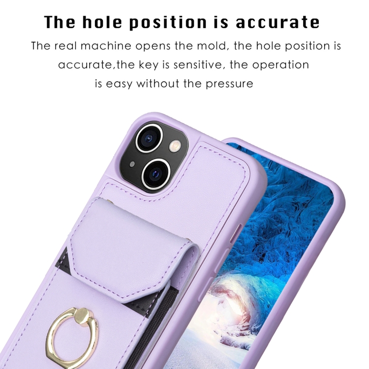 Funda para Teléfono iPhone 14 Plus Bf29 con Soporte para Anillo y Bolsa para Tarjeta (Púrpura)