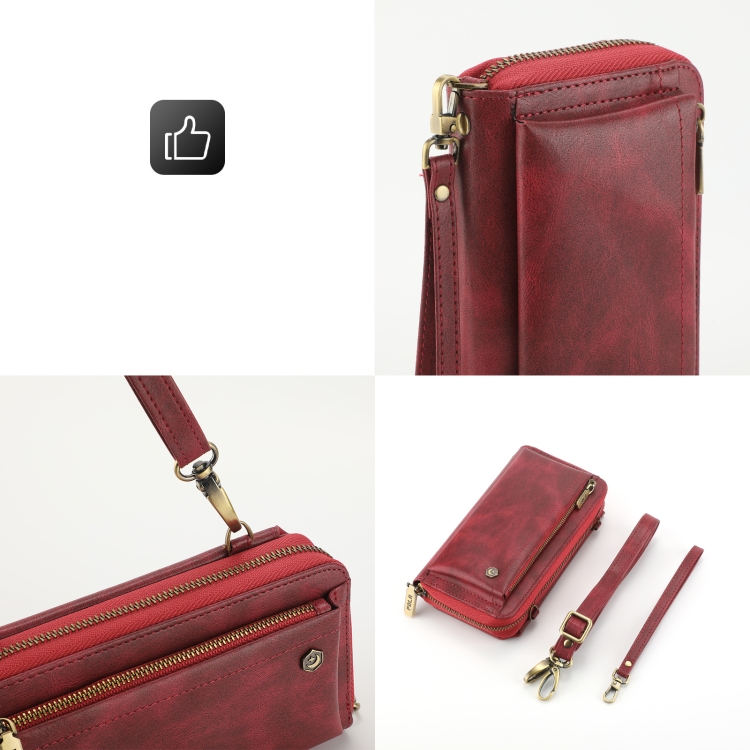 Funda para iPhone 14 Plus Crossbody de Cuero con Billetera y Cremallera Multifuncional (Rojo)