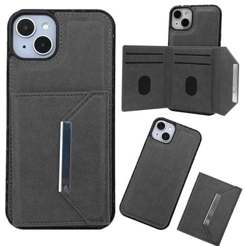Funda para Teléfono iPhone 14 Plus con Bolsa y Ranuras para Tarjetas con Hebilla de Metal (Gris)