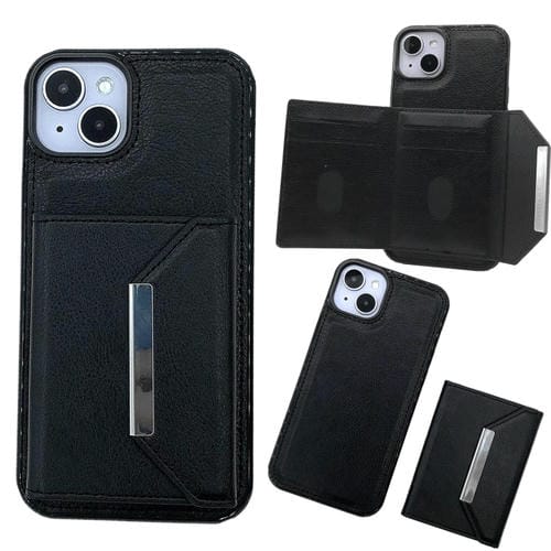 Funda para Teléfono iPhone 14 Plus Bolsa y Ranuras para Tarjetas con Hebilla de Metal (Negro)