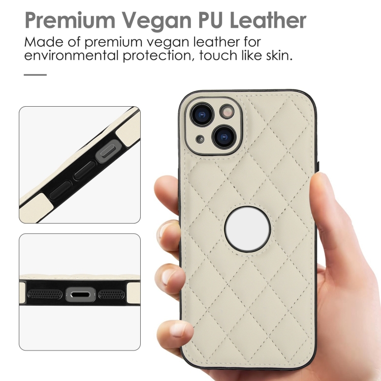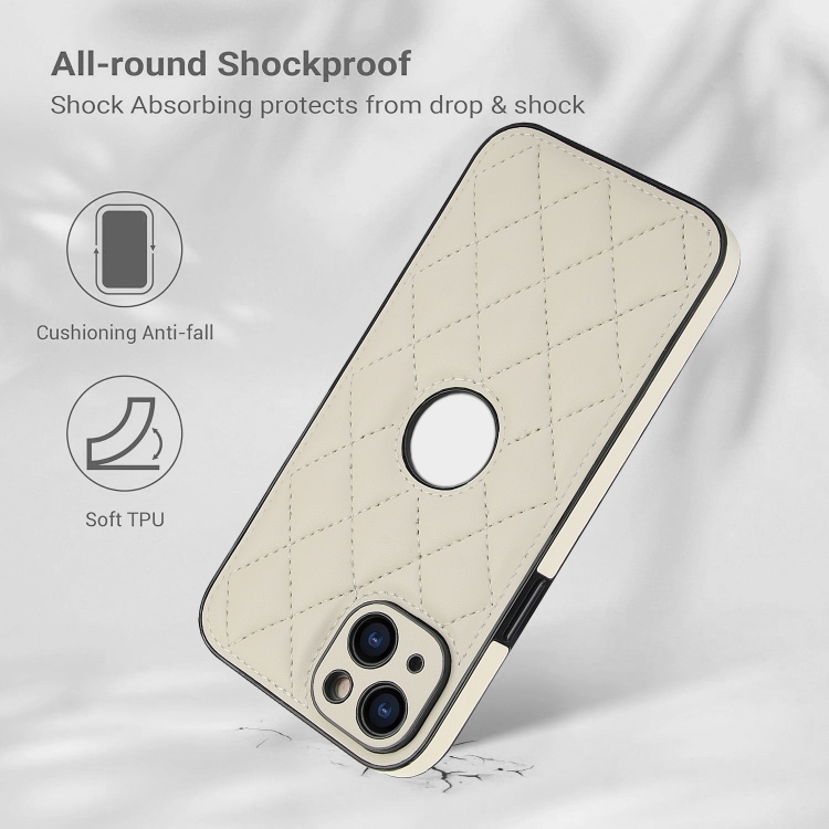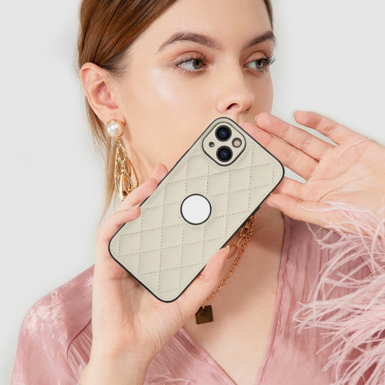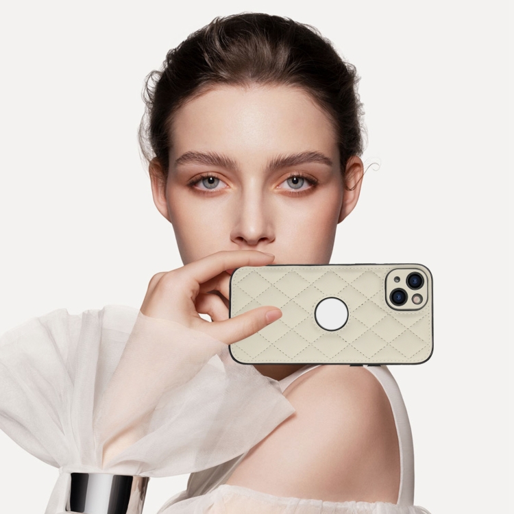 Funda para Teléfono iPhone 14 Plus Contraportada de Cuero Rómbico (Blanco)