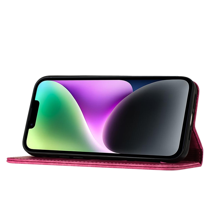 Funda para Teléfono iPhone 14 Plus Cuero con Tapa Estampado de Gato Mariposa (Rosa)