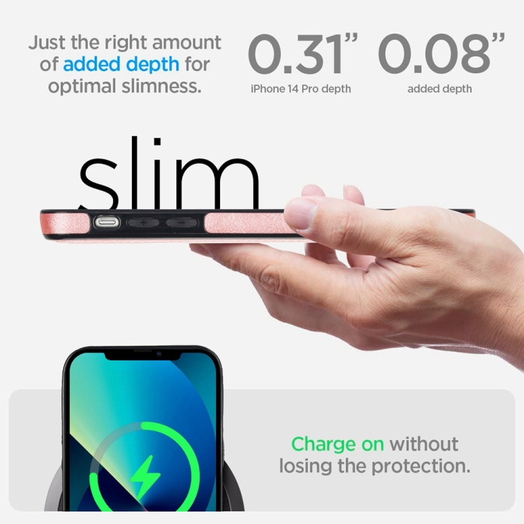 Funda para Teléfono iPhone 14 Plus Magsafe Soporte Invisible Cuero Retro (Oro Rosa)