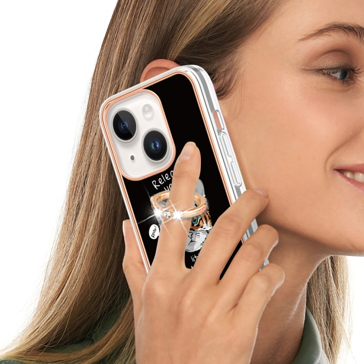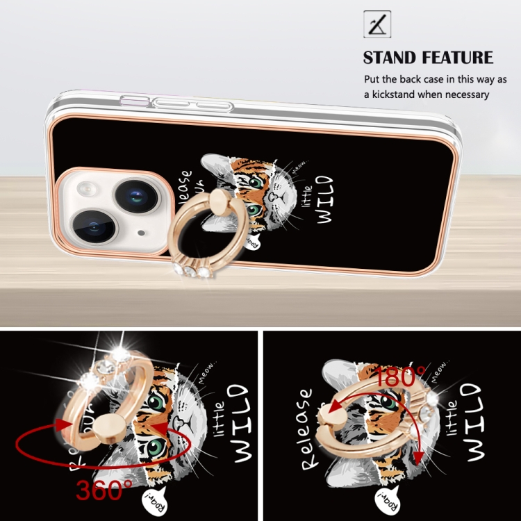 Funda para iPhone 14 Plus Galvanoplastia IMD Doble Cara con Soporte para Anillo (Crecimiento Natural)