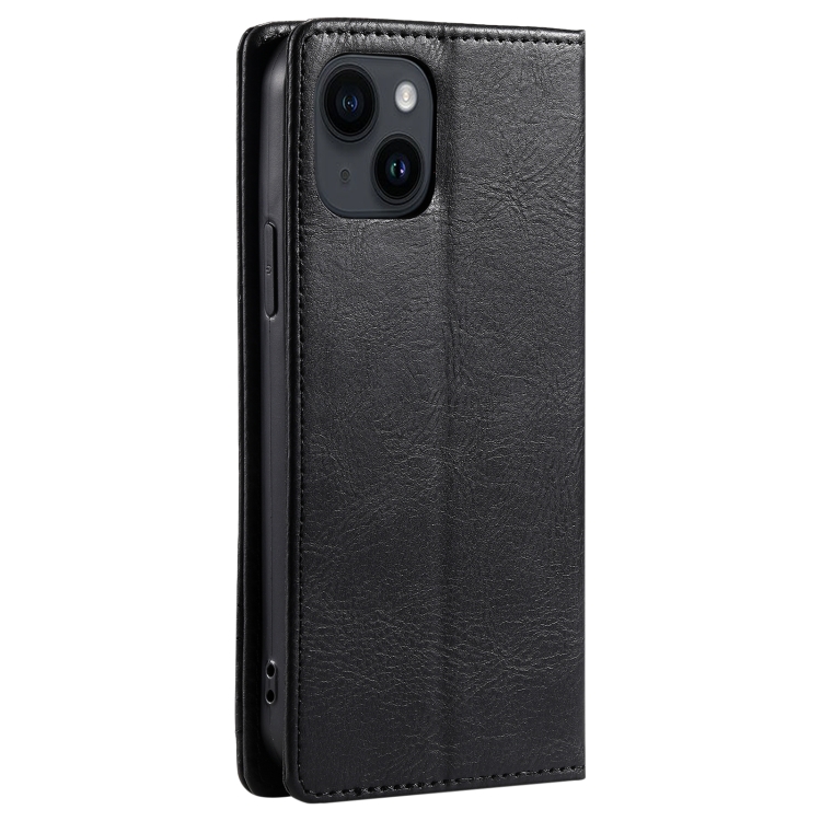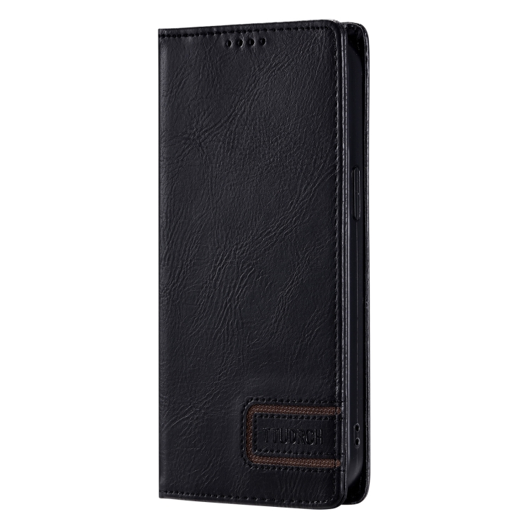 Funda de Teléfono Ttudrch para iPhone 14 Plus Cuero Magnético con Textura Retro (Negro)