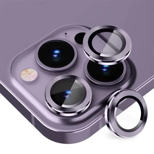 Película de Vidrio Templado Lente Trasera Enkay para iPhone 14 Pro y 14 Pro Max Anillo de Metal (Púrpura Oscuro)